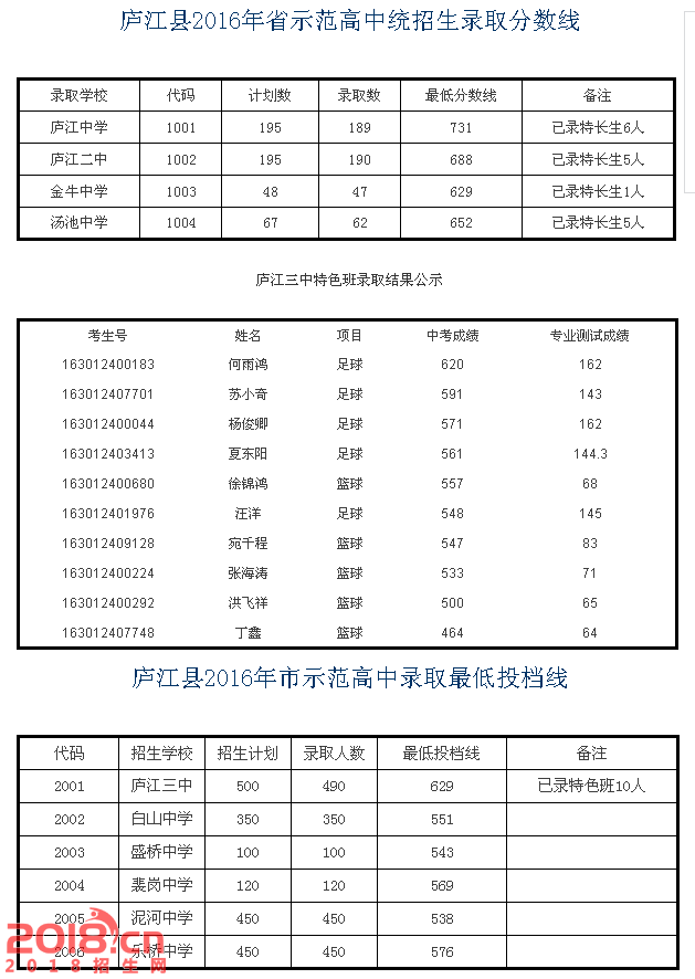 以下2016年庐江中考分数线各区情况统计,以供参考: