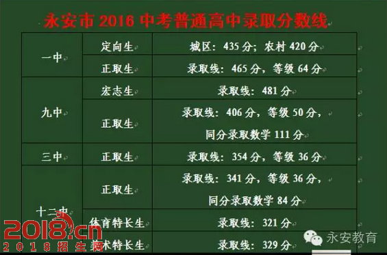 以下2016年永安中考分数线各区情况统计,以供参考:
