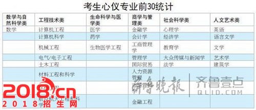 考生心仪的专业前三十名统计