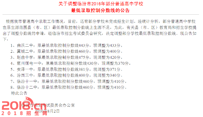 (一)省、市直学校临汾一中、临汾三中、山西师范大学实验中学、临汾市第一实验中学执行尧都区文化最低控制分数线。